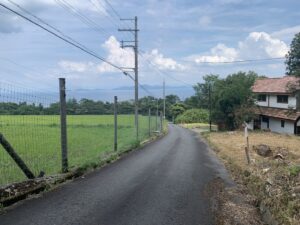 高台から遠くに琵琶湖が見える感じです!静かな場所です・・が!森に囲まれていて、週末をのんびりと過ごされたい方、ログハウスなどを建てて ”コテージ”感覚の場所をお探しの方などに、向いているかと思います!案内は、いつでも可能です!場所は、蓬莱駅から山手の丘の上に上がった場所です!